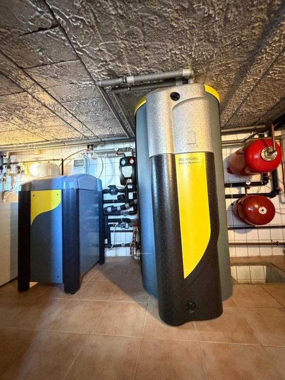 A rendkívül gazdaságos üzemeltetés a korszerű és professzionális gépészeti megoldásoknak köszönhető. A ház fűtését és hűtését egy 10 kW-os, vizes talajszondás hőszivattyú biztosítja, amely két darab, egyenként 210 méter mély szondával működik, vezérelt rendszerrel és vizes padlófűtéssel. A használati melegvízről egy 500 literes puffertartály gondoskodik friss vizes, átfolyós rendszerben, biztonsági tartalékként pedig egy Vaillant gázkazán is rendelkezésre áll. Az energiaellátást napelem rendszer segíti, a gazdaságos működést pedig a 3×16A nappali áram és a 3×16A H-tarifa teszi teljessé.