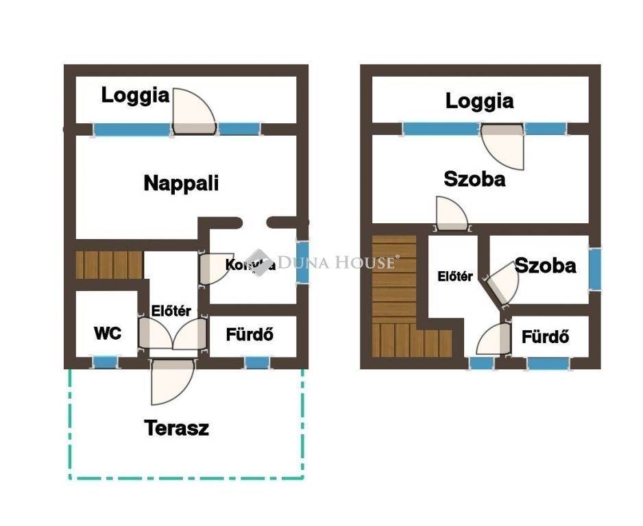 -Alsó szint: konyha, nappali, fürdőszoba