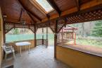 A kert végében egy zárt, fa könnyűszerkezetes autóbeálló is helyet kapott.