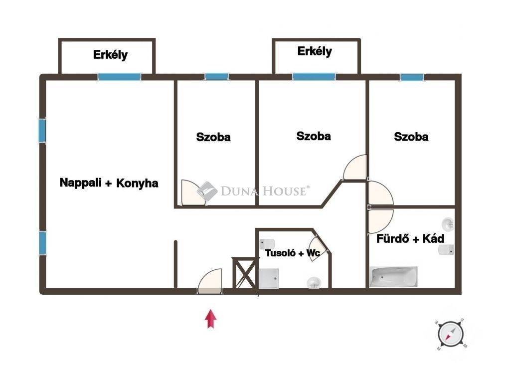 Az ingatlan 3 szobával + amerikai konyhás nappalival rendelkezik, így ideális választás nagyobb családoknak vagy azoknak, akik tágas, modern életteret keresnek.