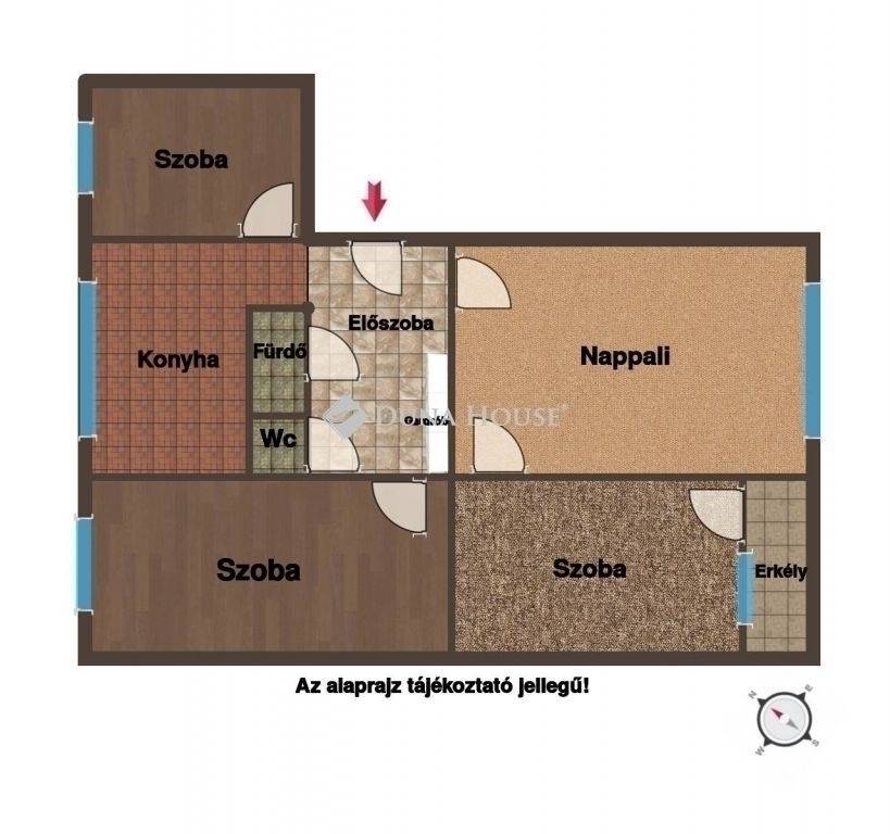 A lakás DK tájolású, ennek köszönhetően egész nap kellemesen világos, rálátás nyílik a budai hegyek irányába, ami különleges adottság a környéken. A lakás elrendezése kifejezetten praktikus.