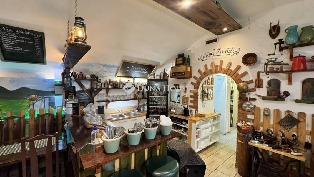 A hely alkalmas sörözőnek, pubnak, vagy más vendéglátó egységnek is. A belső tér bővíthető az iroda + WC résznél. Amennyiben ennél nagyobb helyre lenne szükség, akkor az is rendelkezésre áll, mert a szomszédos alagsori résszel bővíteni lehet. Ez természetesen nem képezi a jelenlegi vételárat!