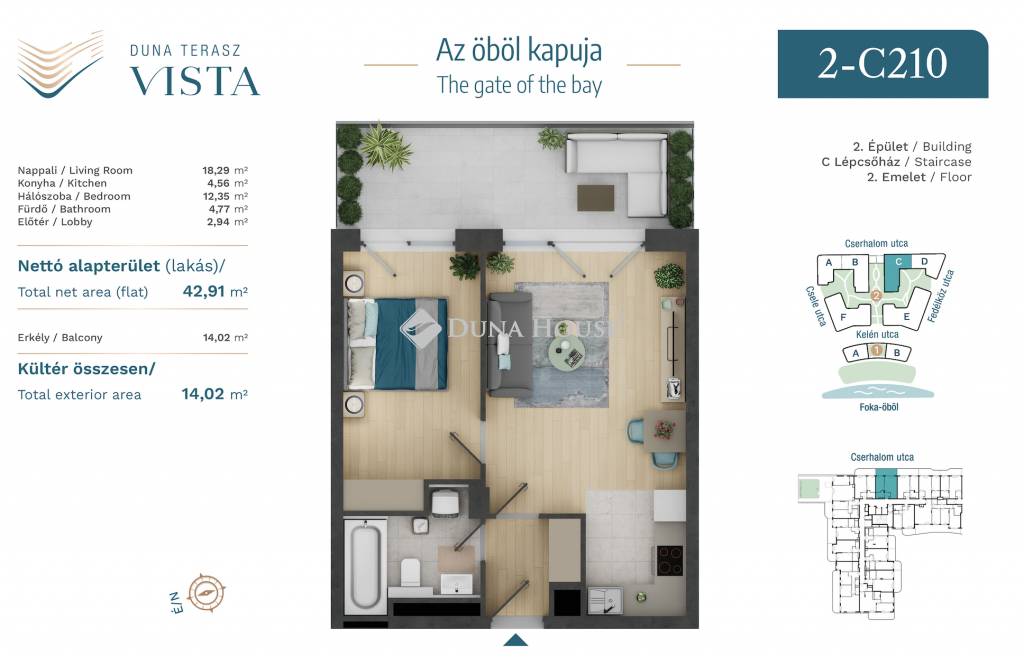-2 szoba, összesen 42,91 m² lakótér