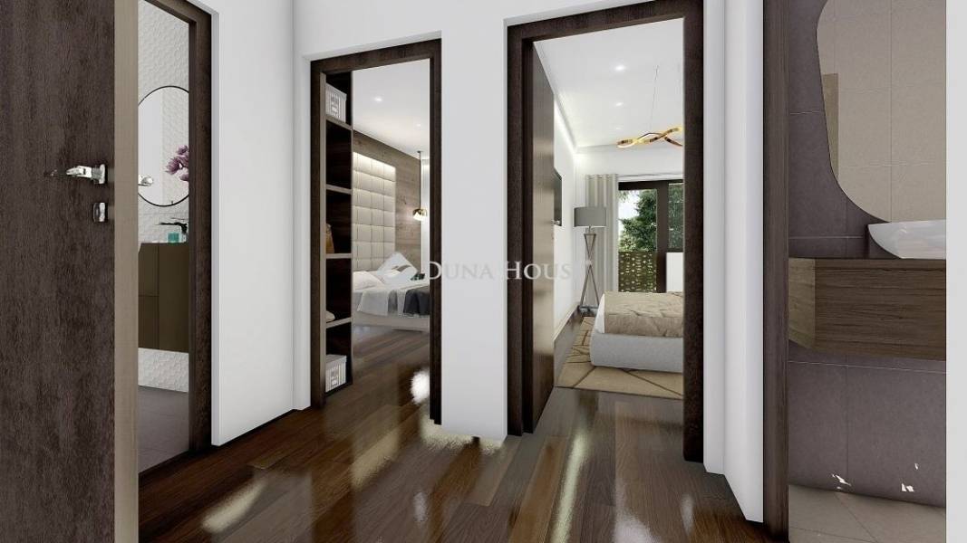 Eladó a Szent Imre kertvárosban egy 2026 negyedik negyedévére elkészülő, modern, új építésű, kétszintes, kertkapcsolatos ház megbízható, tapasztalt kivitelezőtől.Az ingatlan kényelmes és átgondolt elrendezésének köszönhetően tökéletes választás családoknak és mindazoknak, akik új otthonukat minőségi környezetben képzelik el.A földszinten egy tágas, amerikai konyhás nappali kapott helyet, amely közvetlen kapcsolatot biztosít a 10 m²-es teraszhoz, ahonnan továbbhaladva elérhető a kb. 250 m²-es saját használatú kert. A szinten található továbbá egy háztartási helyiség és egy kényelmes vendég-WC is. A bejárat felett egy 4,8 m²-es fedett terasz ad extra praktikumot és védelmet az időjárástól.Az emelet három kényelmes méretű szobát kínál, melyekhez egy modern fürdőszoba tartozik WC-vel együtt. A szobákban több beépített szekrény kialakítására is lehetőség van. Ezen a szinten található egy 6,5 m²-es erkély, amely az egyik szobából közelíthető meg, kellemes kilátást és privát szabadtéri pihenőteret biztosítva.Az otthon fűtését modern hőszivattyúval működő padlófűtés biztosítja, amely nemcsak energiatakarékos, hanem magas komfortérzetet is nyújt. A hűtésről fencol hűtés gondoskodik. A lakáshoz tartozik egy 28 m²-es, saját, önálló garázs, amely kiváló helyet biztosít az autó és további tárolási igények számára.A modern, letisztult kivitelezés, a nagy méretű kertkapcsolat, a több terasz és erkély, valamint az átgondolt belső terek összessége egy igazán élhető, hosszú távon értékálló otthont eredményez.Ha felkeltette a figyelmét ez a páratlan lehetőség ne habozón hívjon még ma!