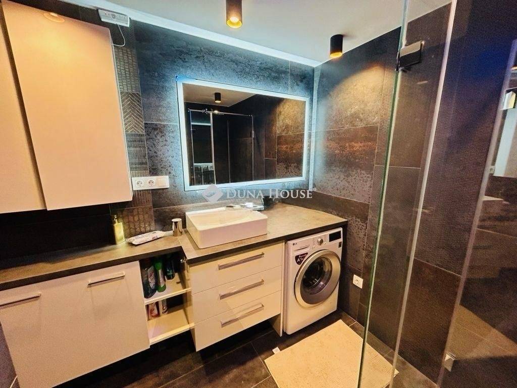 A 2022-ben épült, szigetelt, liftes téglaépület nemcsak esztétikailag vonzó, hanem a legmodernebb technológiákkal és anyagokkal is felszerelt, hogy garantálja a kényelmet és a biztonságot. Az ingatlan energiatakarékos megoldásainak köszönhetően rezsiköltsége is kedvező. A lakás saját hőszivattyúval és H tarifás órával rendelkezik. Mennyezeti hűtés-fűtés, valamint a fürdőszobában padlófűtés biztosítja a megfelelő hőmérsékletet. A három rétegű műanyag nyílászárók szúnyoghálóval és elektromos redőnyökkel vannak felszerelve. A medence tavasztól-őszig áll a lakók rendelkezésére.Az amerikai konyhás nappalis, plusz két szobás, fürdőszobás lakás tökéletes fiatal pároknak, gyerekes családoknak is, valamint azoknak, akik csak élvezni akarják a luxust, biztonságot és kényelmet.