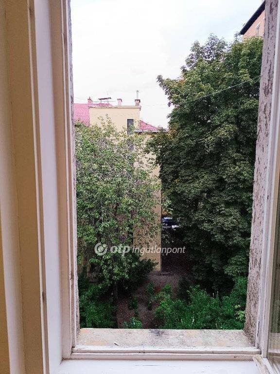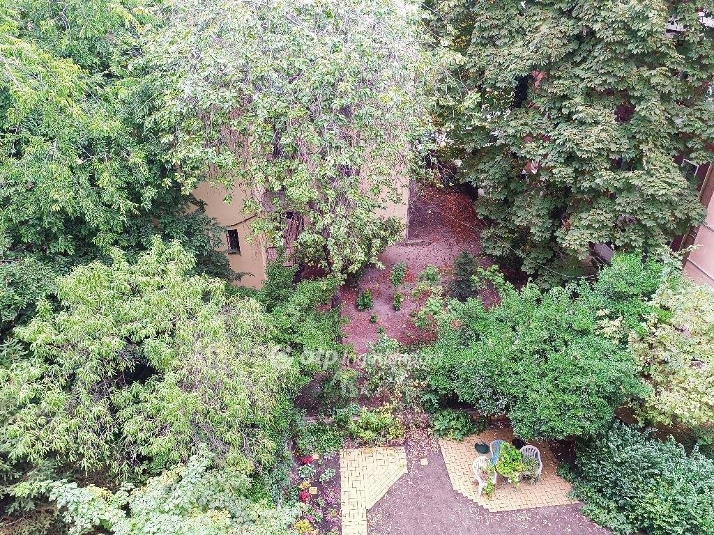 Konyhából nyíló 1,5 m2-es erkély zöld, fás belső udvarra néz