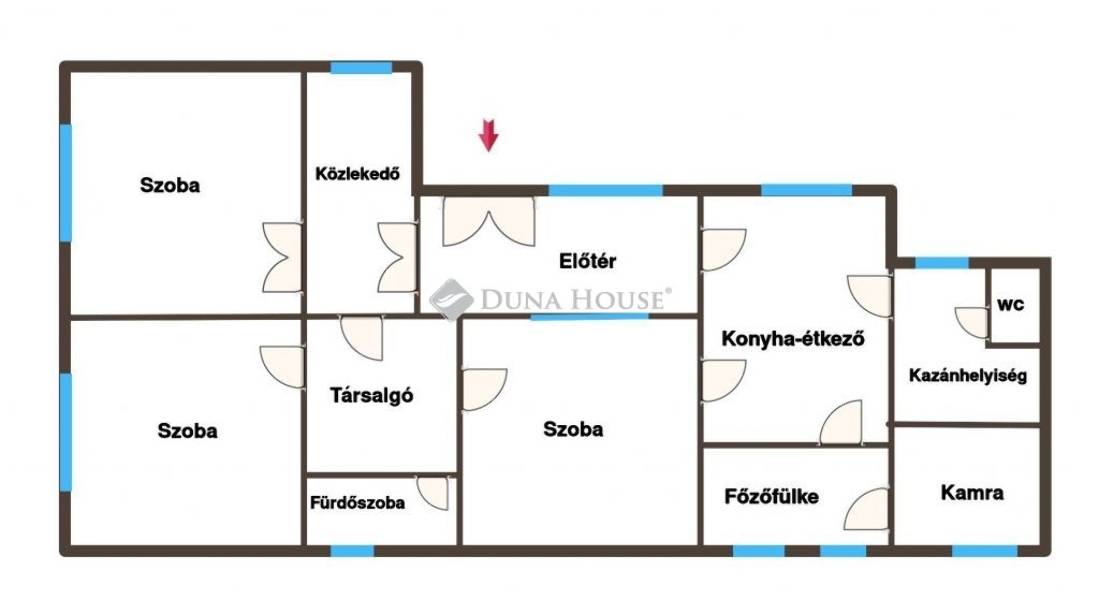 Az ingatlan nettó 113,5 m² lakóterű, a veranda 1985-ben beépítésre került, így a lakóegység az alábbi helyiségekből áll: