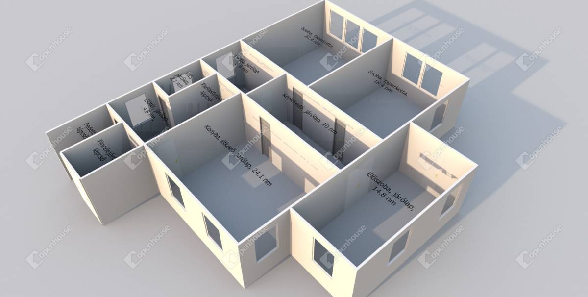 A családi ház 104 nm-es lakóterülettel rendelkezik és egy 1086 nm-es rendezett és karbantartott telken helyezkedik el.