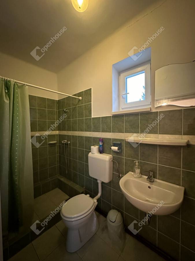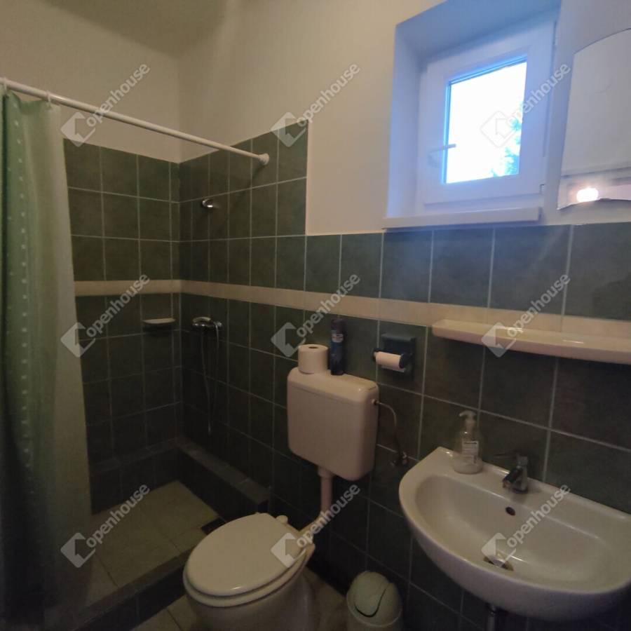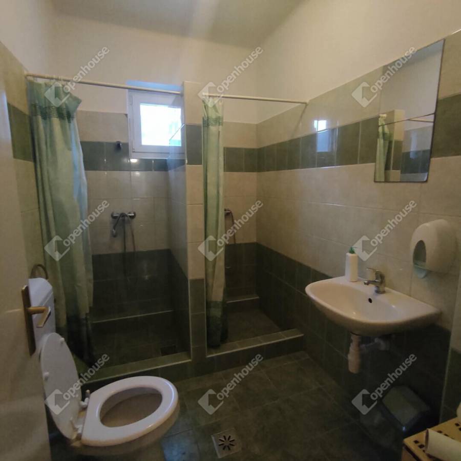 Kialakításra került egy különálló fürdő is, melyben 2 zuhanyzó és egy WC áll rendelkezésre, A szobákban parketta burkolat, az előtérben és a fürdőben járólap burkolat. Itt is műanyag nyílászárok találhatóak.