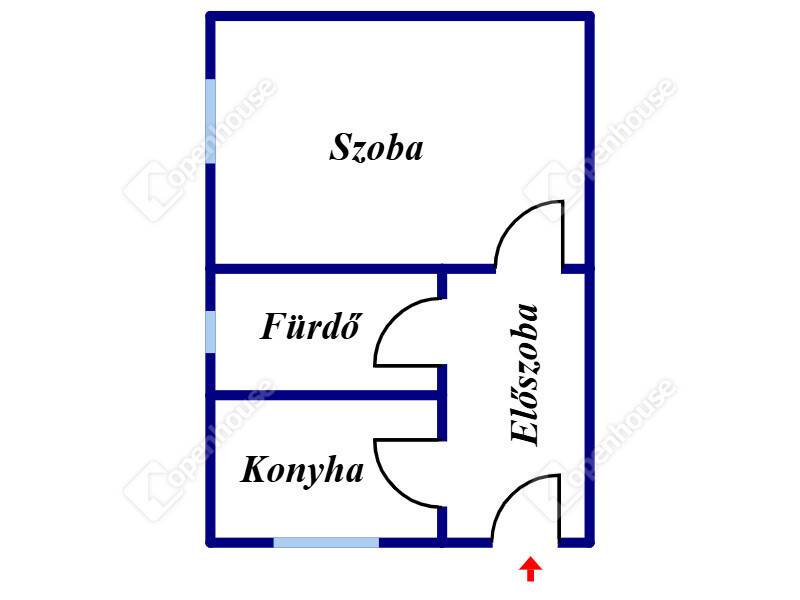 - A ház 28 nm - es, egy szoba, konyha, egy kádas kialakítású fürdőszoba, és előszoba található benne.