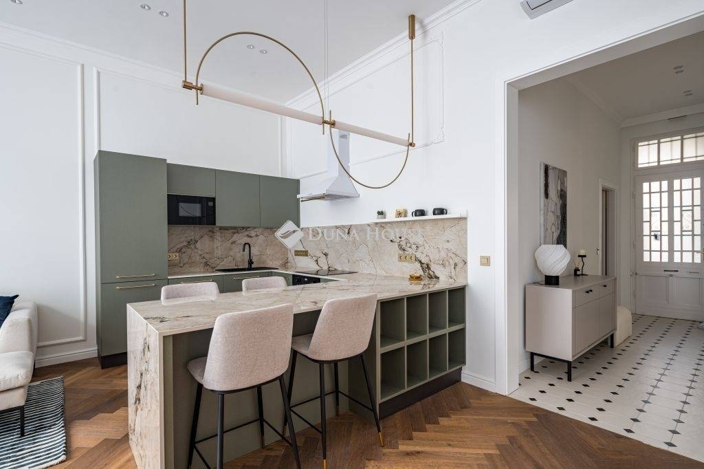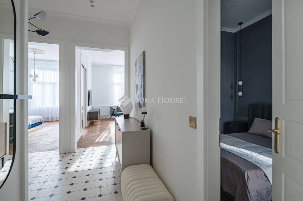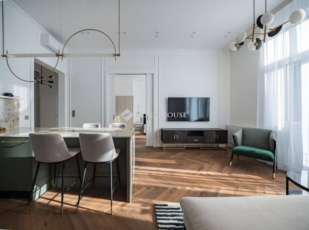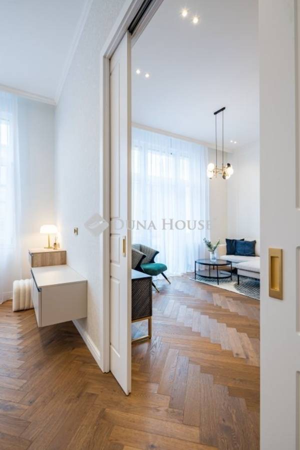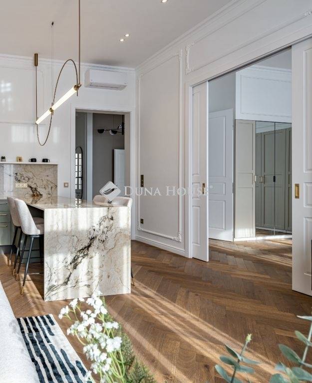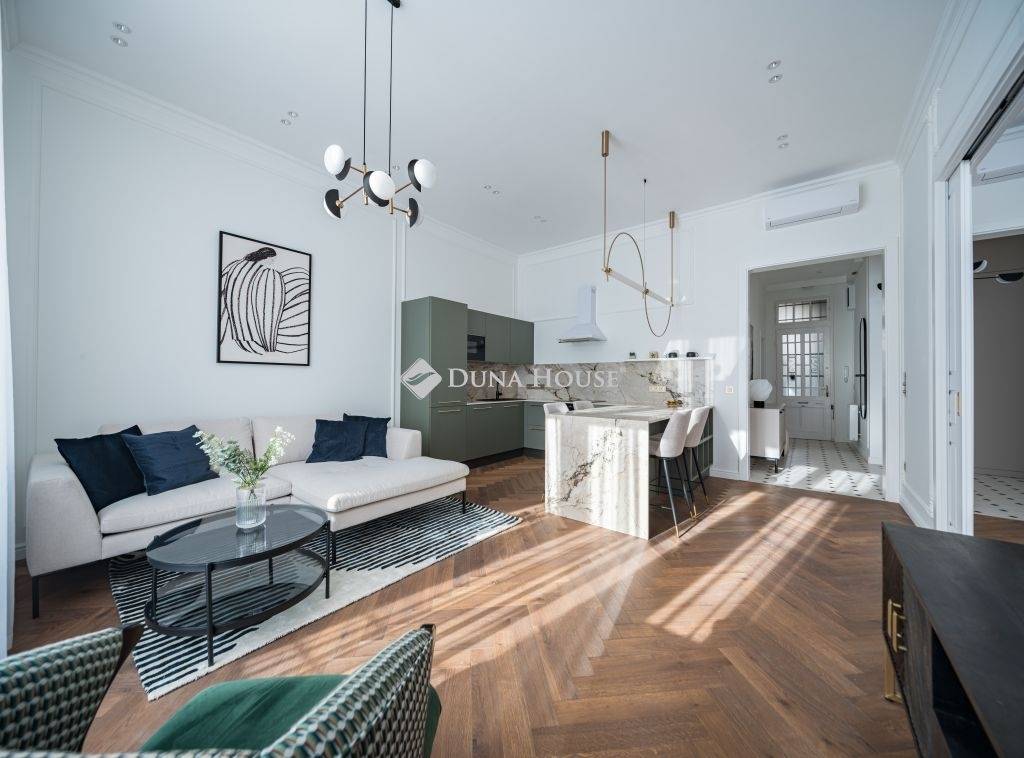 Exkluzívan felújított nagypolgári lakás az Andrássy út közelébenBudapest egyik legpatinásabb környékén, a VI. kerület központjában kínálunk megvételre egy 84 m²-es, erkélyes nagypolgári lakást, mindössze néhány lépésre az elegáns Andrássy úttól, mely a Világörökség részeként a főváros egyik legikonikusabb sugárútja.Az ingatlan átfogó felújításon esett át, átgondolt , elegáns megoldásokat kínálva, melynek során a klasszikus polgári atmoszféra harmonikusan egyesült a modern design letisztultságával és a funkcionalitás kényelmével.A ház homlokzata felújított, méltó keretet ad az épület eleganciájának.Összefoglalva: alapterületű: 84 m², amelyhez 2 m²-es erkély kapcsolódik 3. emelet lift a házban tágas teljesen felszerelt amerikai konyhás nappali + 2 hálószoba + fürdőszoba a lakás elegánsan berendezett, amely az ár részét képeziEgy lakás, ami túlmutat a mindennapokon: az időtlen nagypolgári elegancia és a modern városi életstílus találkozása, a belváros szívében.