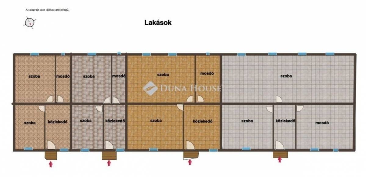 Az első épületben négy külön bejáratú lakás helyezkedik el, amit jelenleg raktárként használnak.
