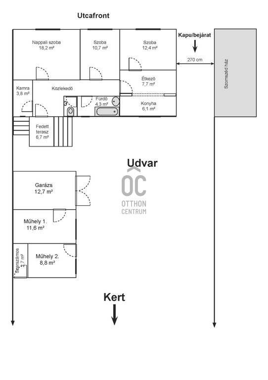 - A tégla építésű, bruttó 85 m2-es (nettó 77 m2) ingatlan 457 m2-es telken helyezkedik