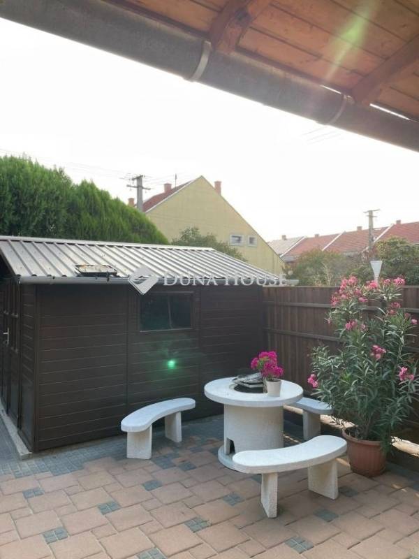 Kiskunhalas nyugodt, kertvárosi környezetében eladó egy 117 m²-es, kétszintes, felújított sorházi lakás, saját, térkövezett udvarrésszel, ahol egy kerékpártároló kisház is helyet kapott.