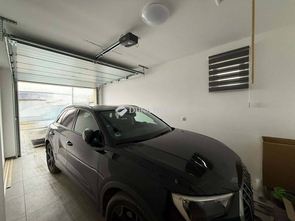 A parkosított kert automata öntözőrendszerrel ellátott, a garázs pedig valódi ritkaság a környéken, ráadásul közvetlen, fedett átjárással kapcsolódik a lakótérhez, ami különösen esős vagy havas időben jelent nagy előnyt.