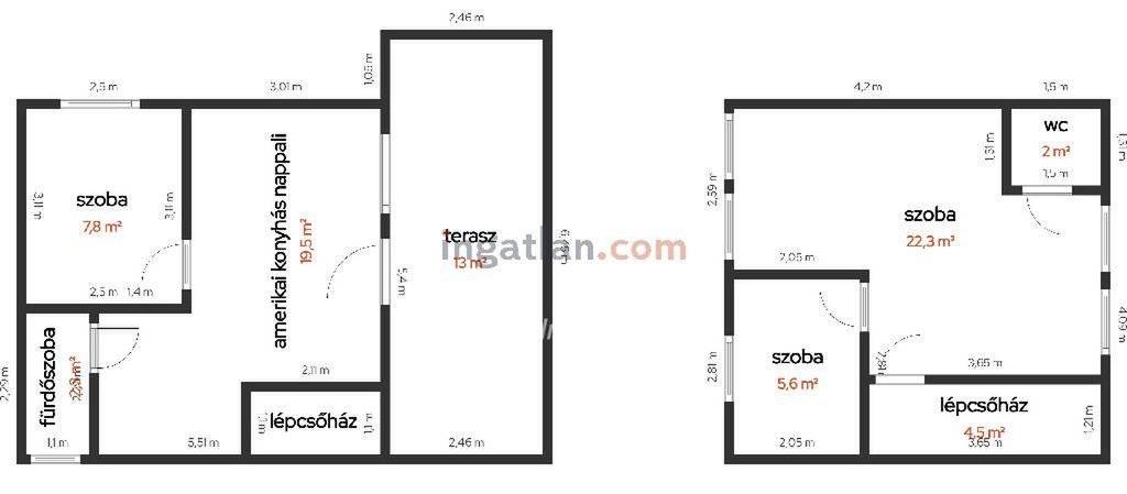 Földszint: amerikai konyhás nappali, szoba, fürdőszoba