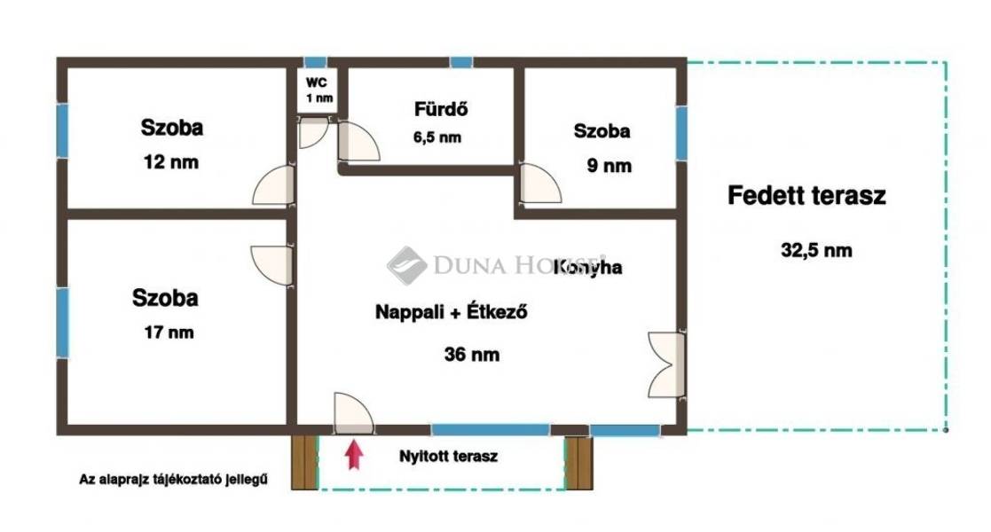 - fedett teraszt, ami a nappaliból is megközelíthető (32,5 nm)