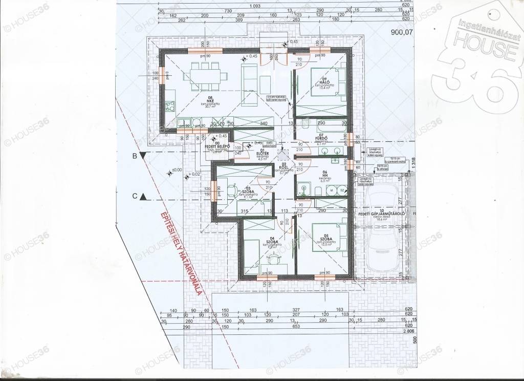 - fedett gépkocsi beálló 18,6 m2