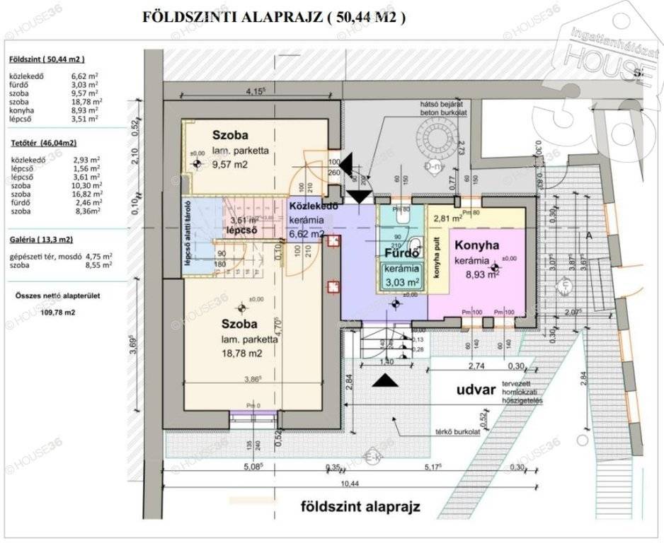 Az ingatlan 3 szinten 6 szobával rendelkezik, 109 m2-en 3 fürdővel, 1-1 szintenként, és a galéria szinten a gépészettel együtt egy wc - kézmosó.