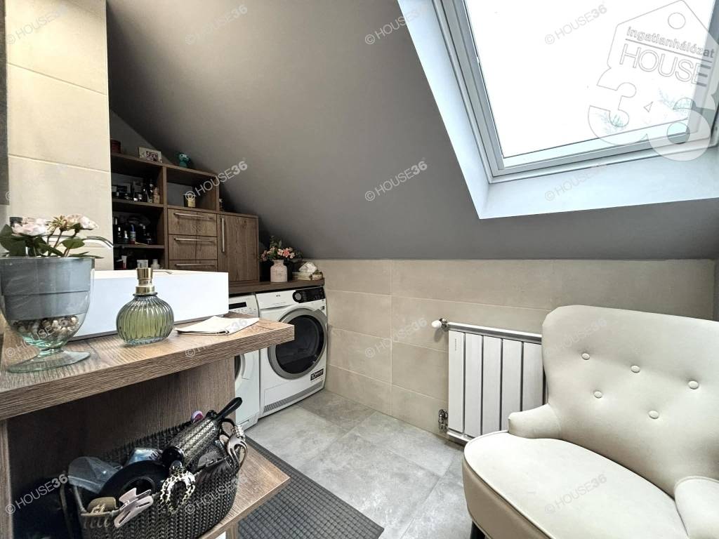 A házhoz 2021-ben tégla falazatú, teljesen új épületrész kapcsolódott, benne egy 36 m²-es, kényelmes dupla garázzsal elektromos kapuval, amely praktikumával tökéletesen illeszkedik a minőségi kialakításhoz.