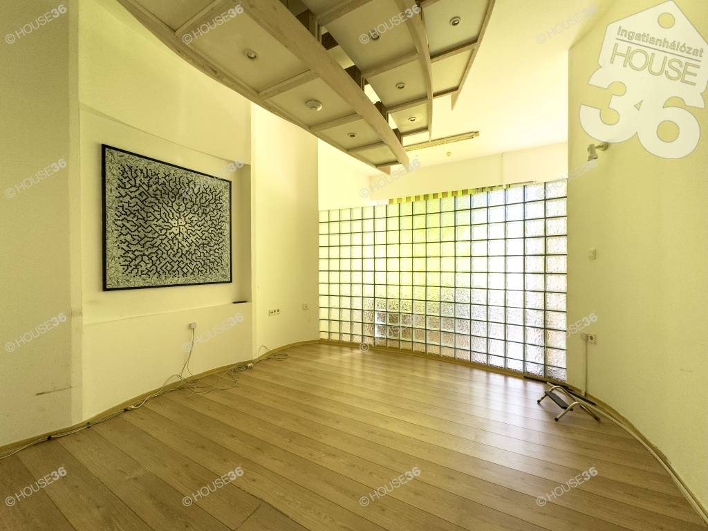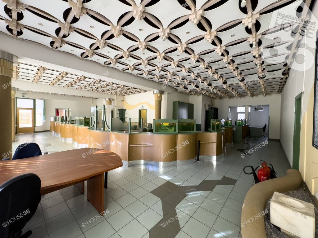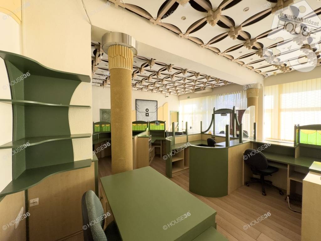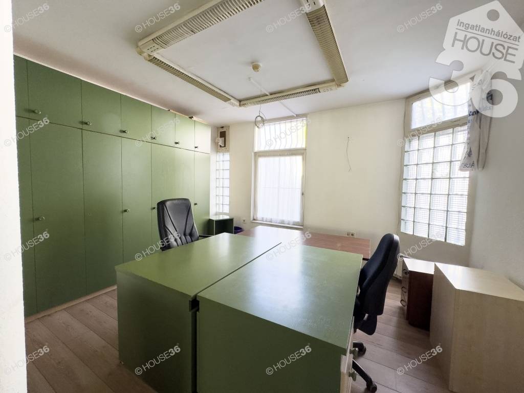 Kecskemét belvárosában a Katona József Színház közelében, eladó egy 277 m2-es, több helyiségből álló iroda, üzlethelyiség közvetlen utcafonti nagy üvegportállal.