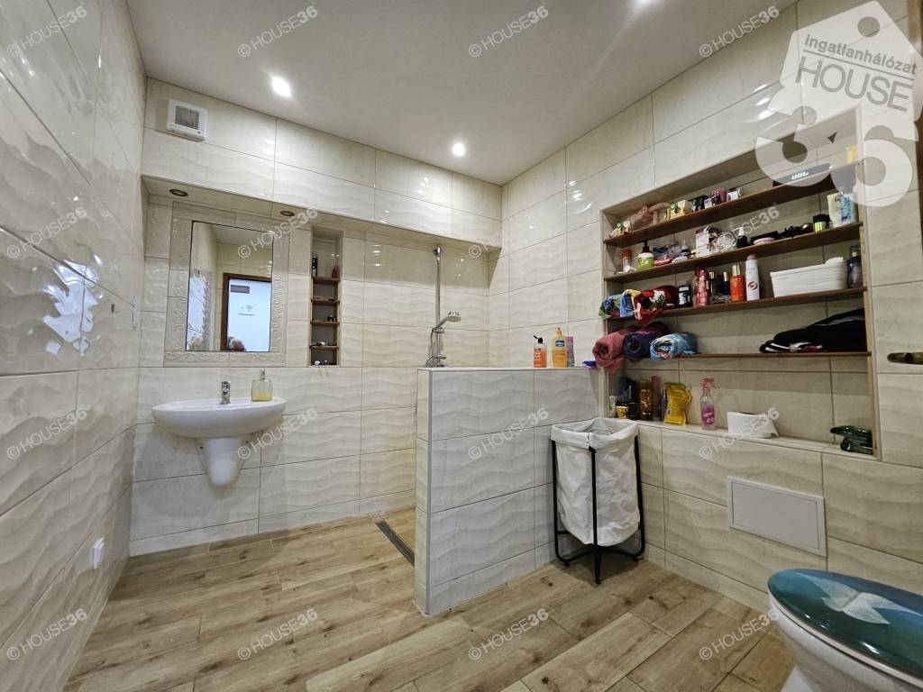 -igényes fürdő, igényes burkolatokkal, szaniterekkel