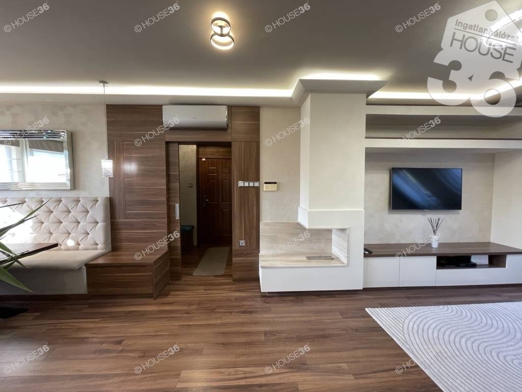 A lakás bruttó 93 m2, lakberendező által kialakított, prémium minőségű, ottmaradó beépített stílusos, egységes bútorzattal, magas színvonalú gépekkel felszerelve!