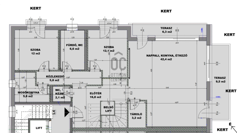 •L2 lakás: 113 m² + 12 m² terasz – 398 MFt