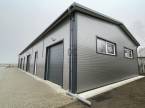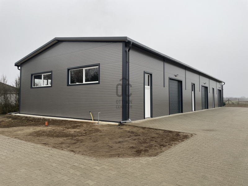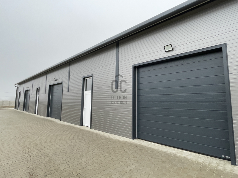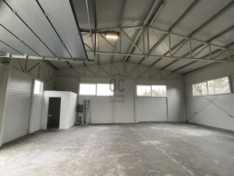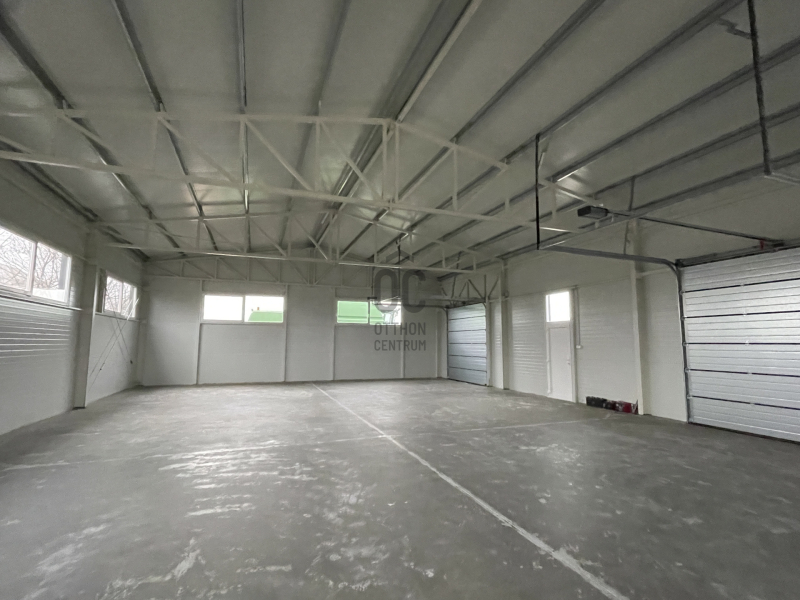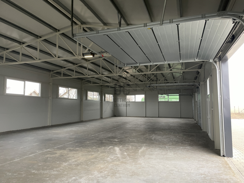 Összesen 3db bejárattal és 3db 3x3m-es szekcionált HÖRMANN távirányíthatós garázskapuval ellátott, így az épület igény szerint akár 3 részre is osztható/ leválasztható, továbbá megtalálható egy mellékhelyiség kézmosóval. Nagy belmagassággal rendelkezik, legmagasabb pontja 5,6 méter.