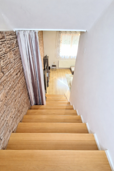 A földszinten tágas nappali, beépített konyha, hálószoba, fürdőszoba, valamint mosókonyha biztosítja a kényelmes mindennapokat.