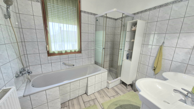 A szobák laminált burkolattal rendelkeznek, a ház állapota kiváló. Műszaki felszereltségét tekintve az ingatlan 12 cm-es vastagságban hőszigetelt, hőszigetelt fa nyílászárókkal, új kondenzációs gázkazánnal, valamint riasztórendszerrel ellátott, ami energiatakarékos és biztonságos működést garantál.