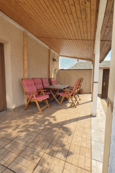 A házhoz garázs is tartozik, valamint egy 15 nm-es terasz, grillező, amely tökéletes helyszíne lehet családi ebédeknek, baráti összejöveteleknek vagy egy nyugodt reggeli kávézásnak. A kellemes, otthonos környezet ideális teret biztosít a közös pillanatokhoz és a mindennapi kikapcsolódáshoz.