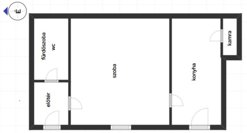 A lakás a társasház 2. emeletén található, 39 m² alapterülettel. Megközelítése függő folyosóról történik, két külön bejáraton keresztül. Az egyik bejáraton egy előszobába érkezünk, ahonnan külön nyílik a szoba, valamint a fürdőszoba WC- vel. A konyha megközelíthető a szobán keresztül, illetve a másik bejárati ajtón át is. A konyhából egy praktikus kis kamra nyílik.