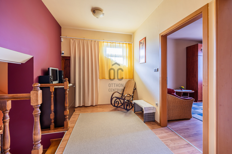 - Az ingatlanhoz tartozik egy 16 nm-es terasz is, amely a nyári estéken kellemes pihenést kínál, miközben a rendezett kertben élvezheti a természet közelségét.