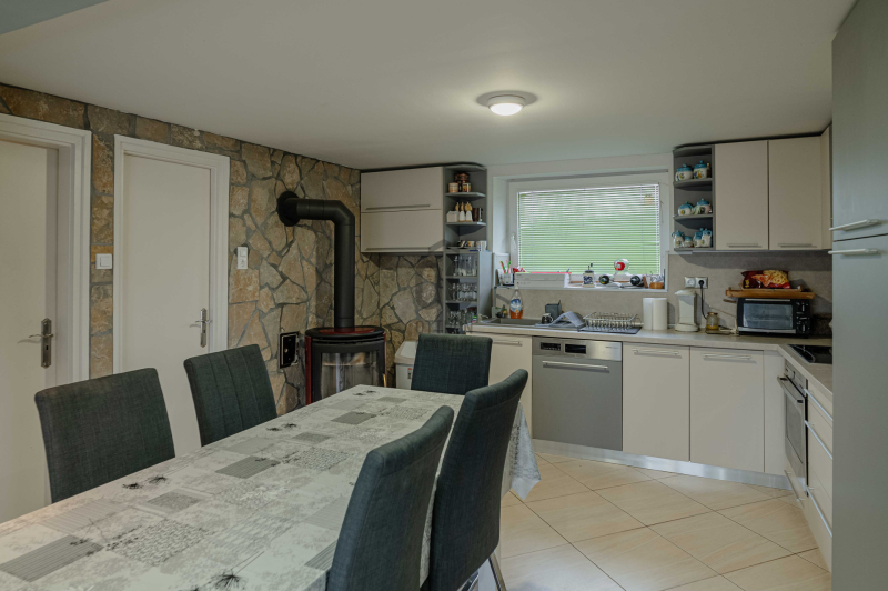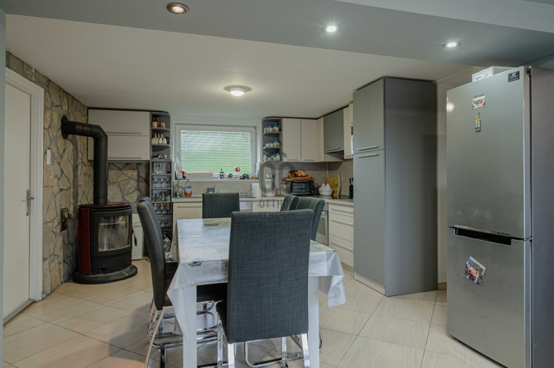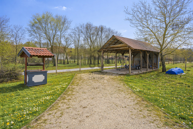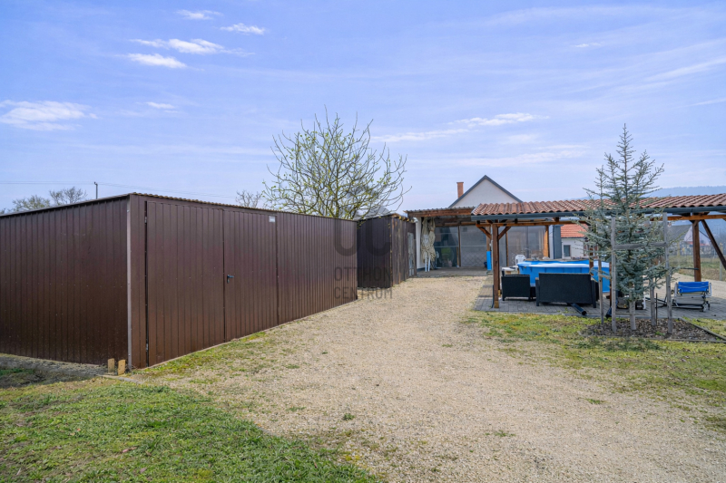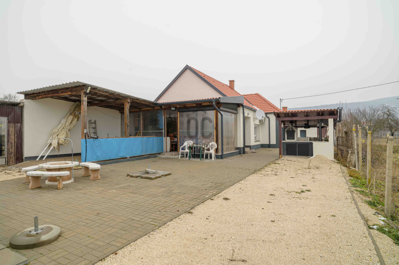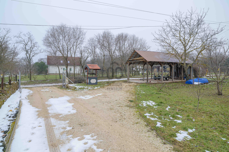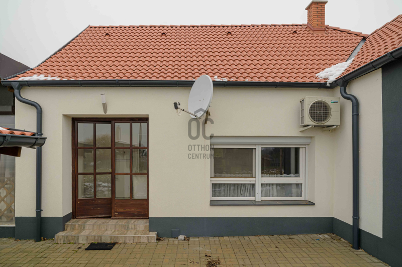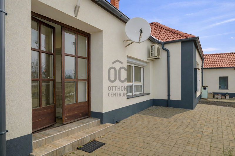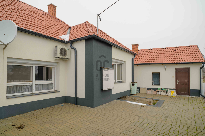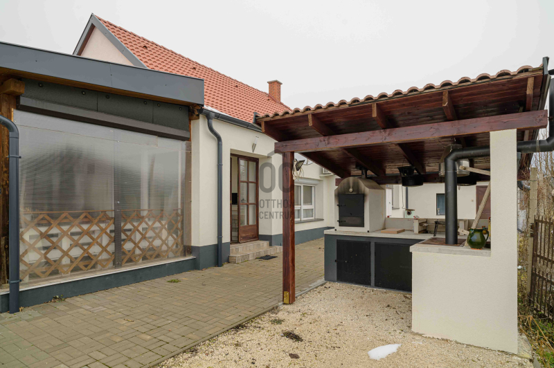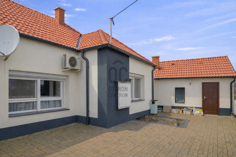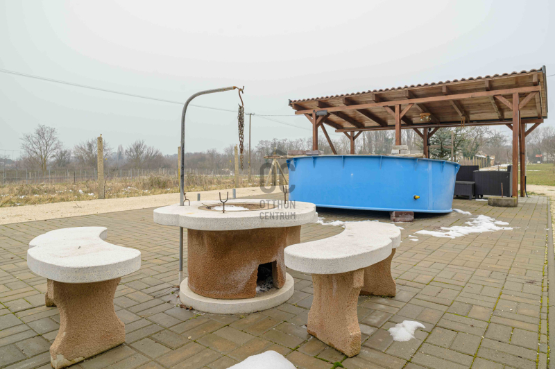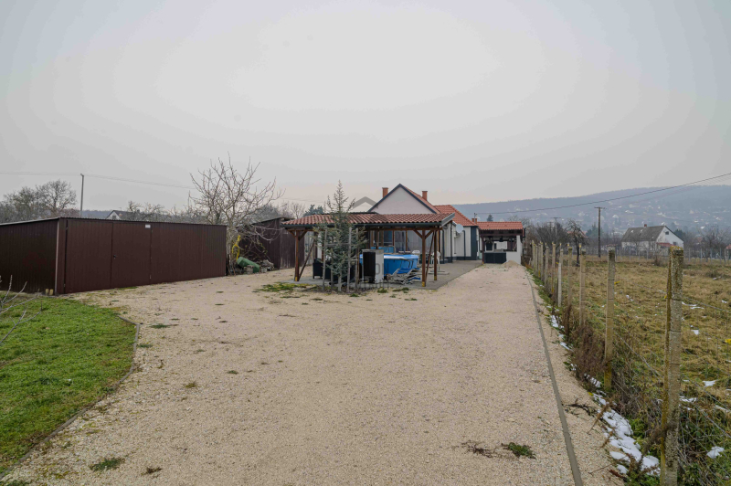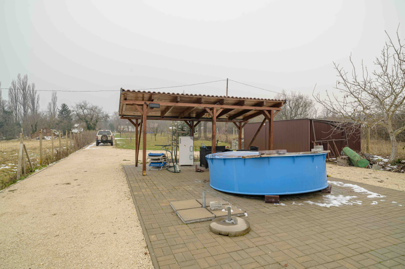 A főépület 73 m² hasznos alapterületű, melyet egy 9,5 m²-es különálló kisház, egy 20m2-es fedett terasz, egy 19m2-es fedett lakóautó tároló és egy 19m2-es pince egészít ki. A 2373 m²-es, sík telek igazi zöld oázis: gondozott, sok gyümölcsfával, kúttal ellátott, teljesen körbekerített, elektromos kapuval.