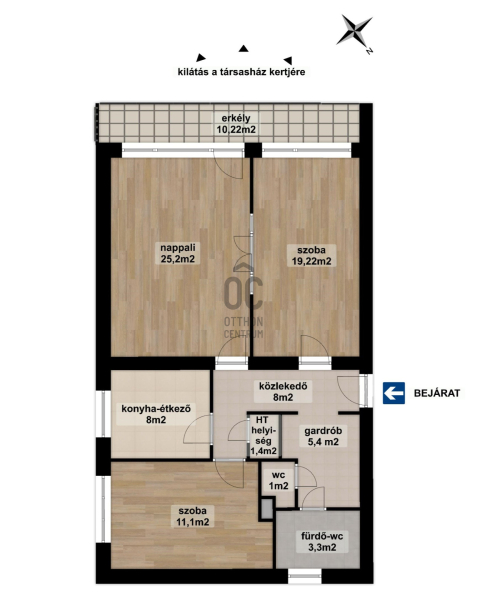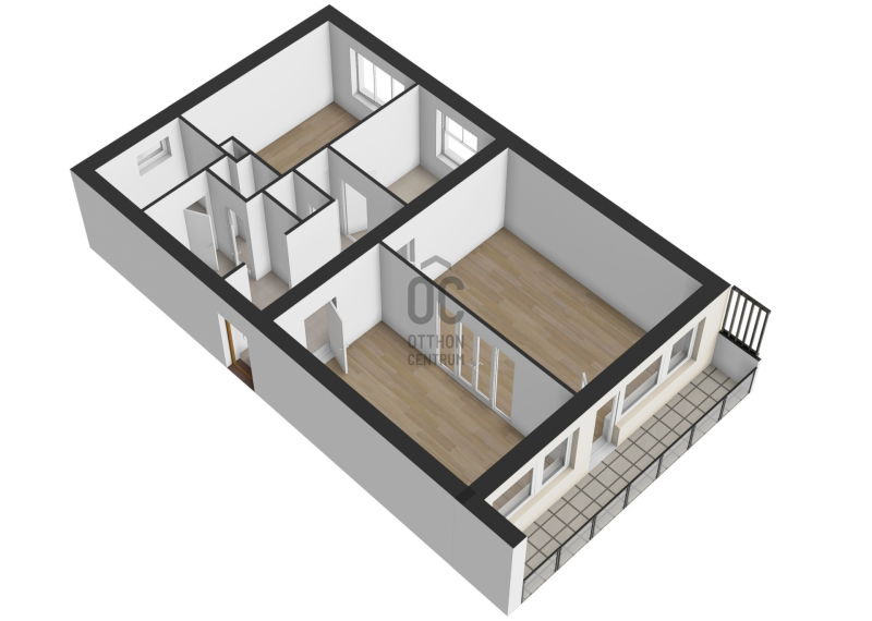 – 3 szoba + külön konyha: élhető, jól bútorozható alaprajz