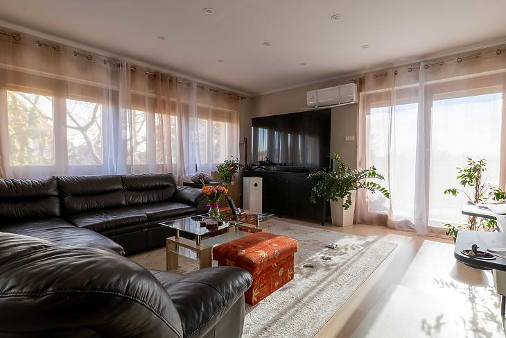 Elosztását tekintve amerikai konyhás nappali + 3 szobás kialakítást kapunk, 2 fürdőszobával, külön WC-vel és kényelmes előszobával – ideális akár nagyobb család számára is.