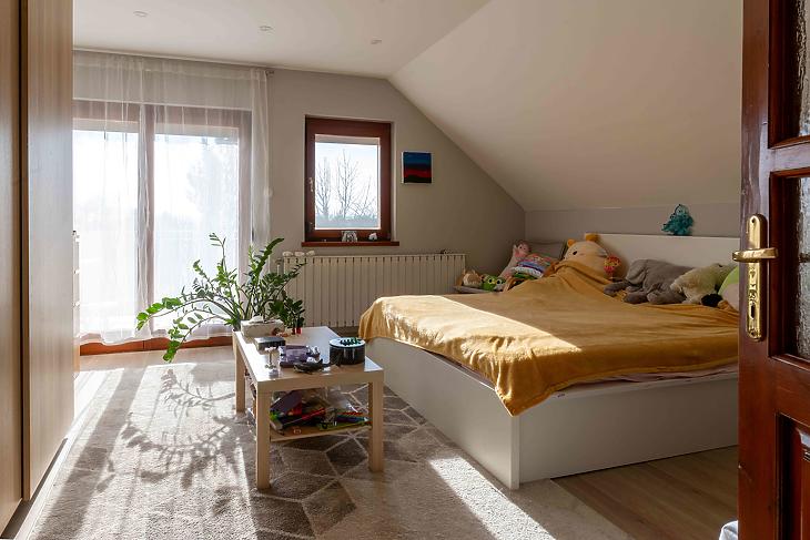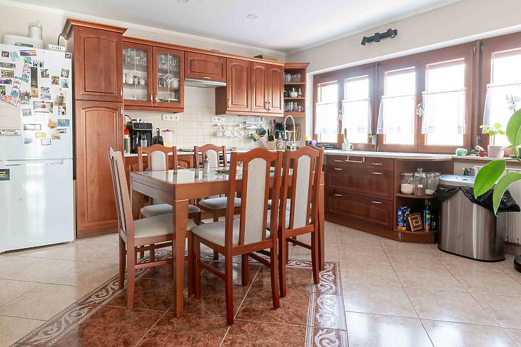 A fűtésről korszerű kondenzációs kazán gondoskodik radiátoros hőleadással, a komfortérzetet pedig hűtő-fűtő klímák teszik teljessé.