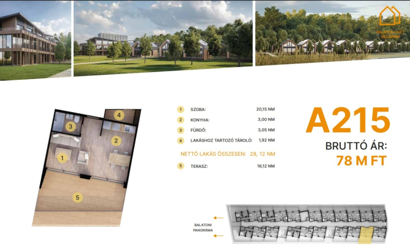 Modern letisztult építészet, tömegformálás, Balatonra tájolt panorámás teraszok.