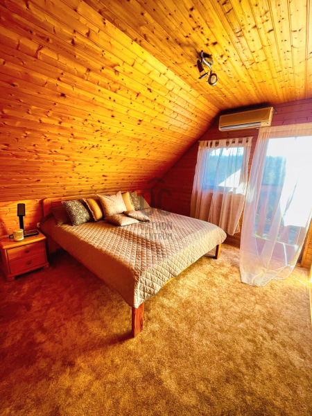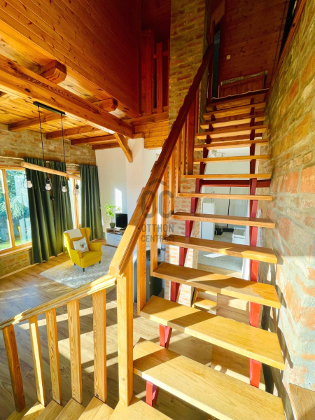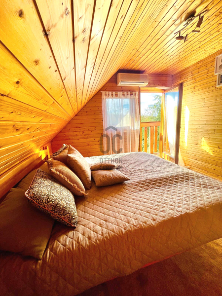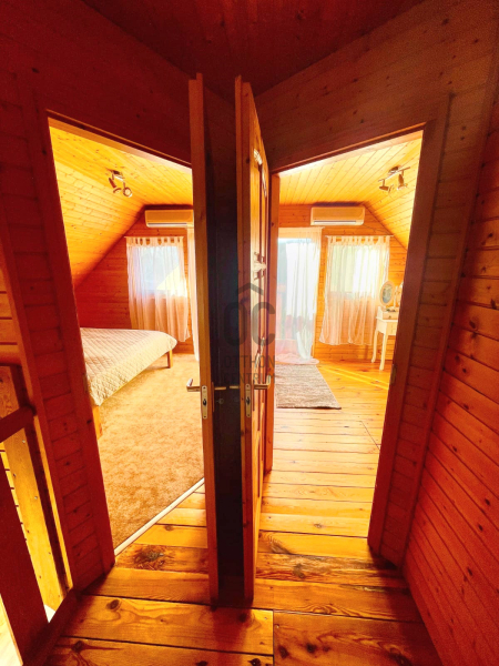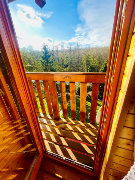 A sok természetes, fa anyag felhasználásából adódóan az ingatlan teljesen beleillik a környezetbe. Itt a természet és az ember végtelen harmóniában élhet egy csendes, nyugodt helyen, közvetlen az erdő és annak sokszínű élővilága mellett.