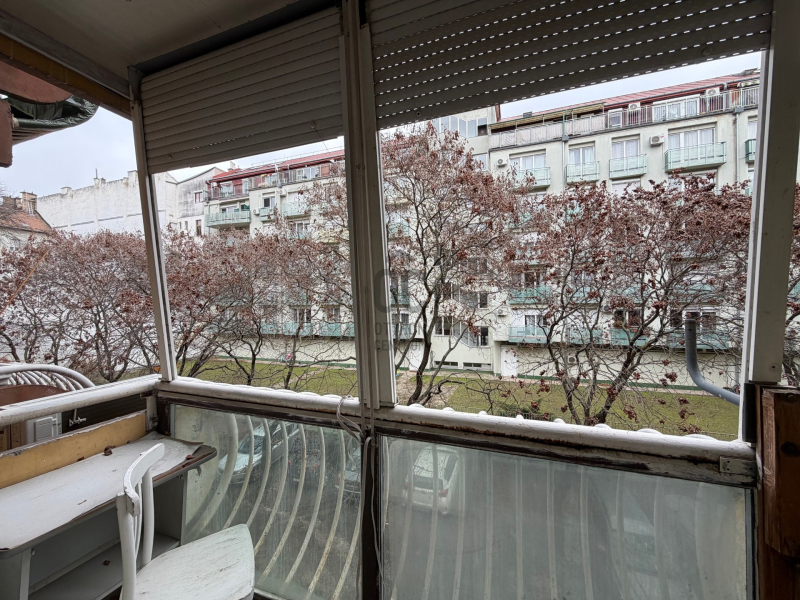 A lakás tájolásának köszönhetően rendkívül világos. Az erkély a zárt, belső udvarra néz.
