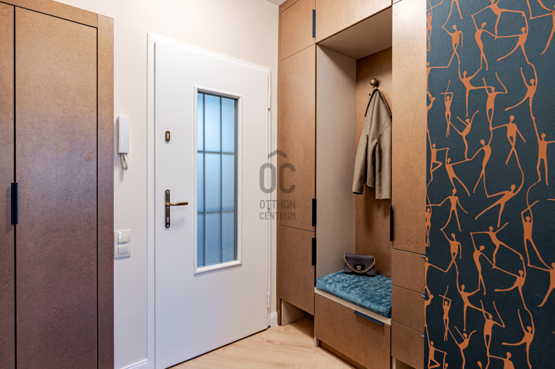 A lakás belső tere teljesen újragondolt: újonnan épített válaszfalakkal egy új alaprajz került kivitelezésre, ami a maximális térkihasználást és az élhetőséget reprezentálja.