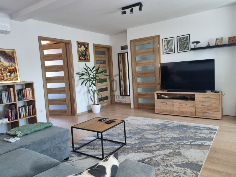 Az épület 2023 ban teljesen fel lett újítva csak a szerkezet maradt a régi. Új nyílászárók, új vízvezeték, villannyvezetèk és fűtési rendszer, új tető, új burkolatok és szigetelés, új térkő. A telken található egy nagyobb fa tároló is. A kert füvesített és a keritésnél végig Leylandi fenyők vannak ültetve. A kerten elektromos öntözőrendszer található ami fúrott kútból nyeri a vizet. Az ingatlan riasztóval és kültéri biztonsági kamerával felszerelt, informatikai hálózata végpontokkal van ellátva, úgy, hogy a szinteket összekötése is biztosított. Helyiségek elosztása Földszint: halószoba, étkező/nappali, nagy szoba, konyha, előtér+gardrob, wc, fürdőszoba összesen 2db klímaberendezés emelet: 2db szoba és egy nagy szoba, előtér, wc, fürdőszoba, konyha+étkező+kis tároló összesen 4db klímaberendezés tetőtér: 2db szoba, dolgozó sarok, nappali+étkező, konyha, wc, fürdőszoba összesen 3db klímaberendezés
