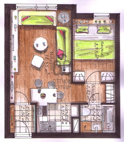 - nappali + hálós kialakítás