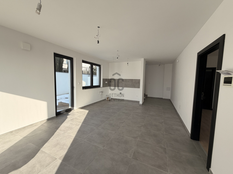 Nappali–konyha–étkező nagy üvegfelületekkel és dél-nyugati tájolással.