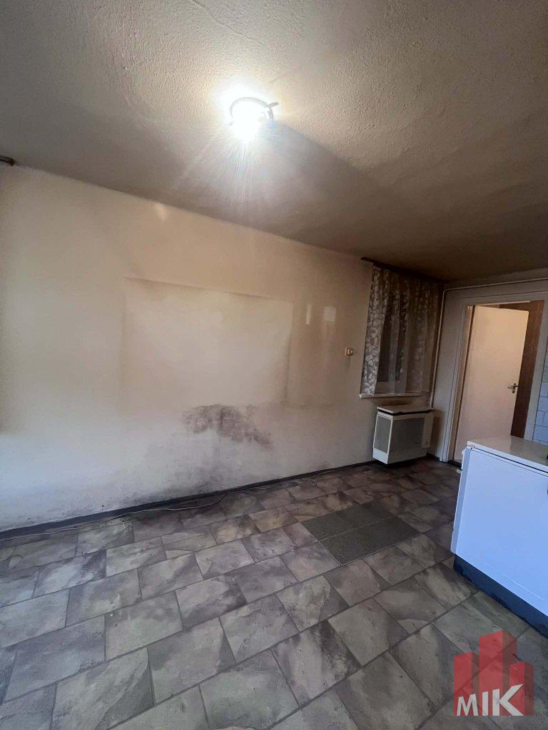 Az ingatlan alsó szintjén egy kényelmes méretű szoba, tágas konyha, fürdőszoba, külön mellékhelyiség, egy közel 10 m²-es, tárolásra alkalmas helyiség, folyosó, valamint a lépcsőházból nyíló emeleti feljáró található. A földszinten a konyha és a fürdőszoba már új műanyag nyílászárókat kapott, a fürdőszoba felújítása megkezdődött, amely során a vízvezetékek cseréje is megtörtént.