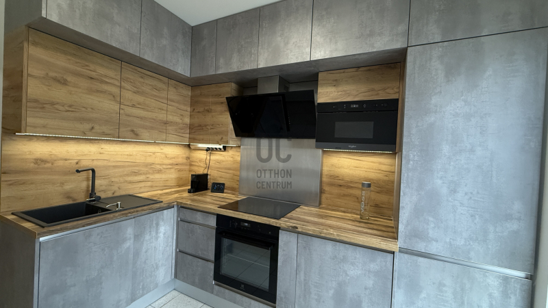 A konyha a legmodernebb háztartási gépekkel lett felszerelve: Indukciós főzőlap és rozsdamentes acél hátfal.