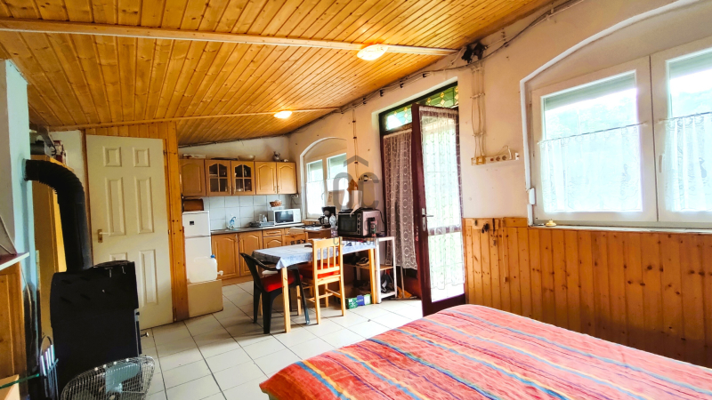 A második, ugyancsak téglából készült házikóban 20 m2 nagyságú NAPPALI+KONYHA+ÉTKEZŐ továbbá egy mosakodó helyiség+wc KÍNÁL KOMFORTOS LAKÓTERET.