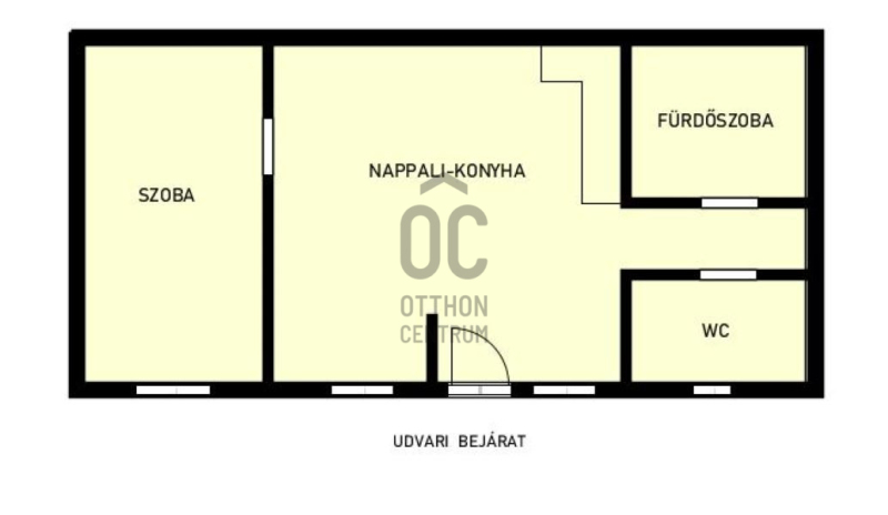 A földszinti elhelyezkedésnek köszönhetően az ingatlan lépcsőzés nélkül megközelíthető, így kényelmes megoldást jelent idősebbek vagy kisebb lakást keresők számára is.