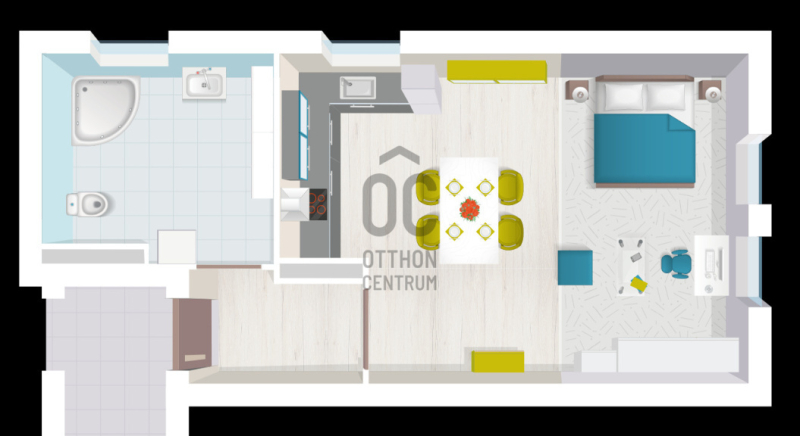 Az lakás egy szobás, egy fürdőszobás elrendezésével maximálisan kihasználja a teret, így a mindennapi élet kényelmét tudja biztosítani.